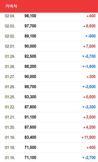 또다시 큰폭으로 오른 1월 19일 이후 절묘하게 20일 애플카 협업은 기아차와 한다는 뉴스가 발표됩니다.